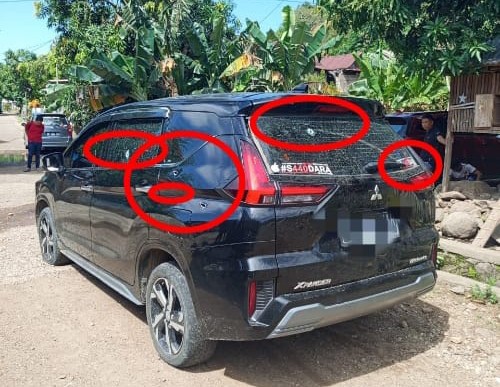 Insiden ini terjadi Sekitar pukul 00.40 Wita, Selasa (14/10/2025) dini hari, delapan butir peluru bersarang di bodi sebuah mobil Mitsubishi Expander (nomor polisi dirahasiakan, red) yang dikendarai dua warga.