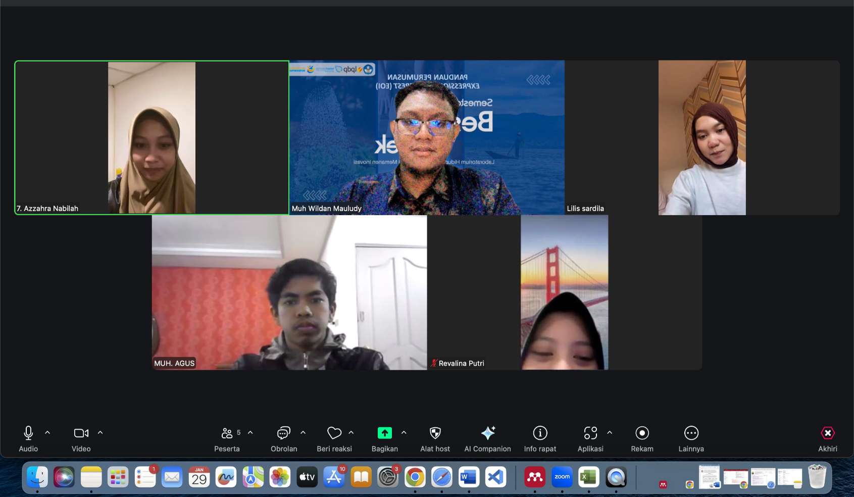 Kegiatan ini dilaksanakan secara daring melalui Zoom Meeting sebagai bentuk pendampingan akademik dan pengawasan berkelanjutan terhadap capaian pembelajaran mahasiswa di lokasi magang.