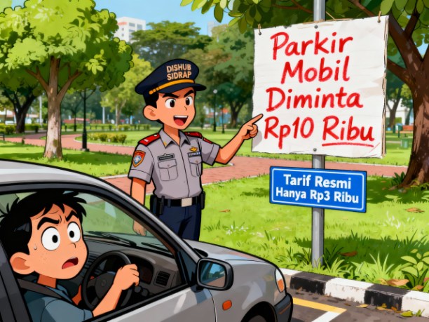 AJATAPPARENG.ONLINE, SIDRAP – Praktik penarikan biaya parkir di sejumlah titik di Kabupaten Sidenreng Rappang (Sidrap) kembali menuai sorotan. Sejumlah pengendara mengeluhkan tarif parkir yang dinilai tidak sesuai dengan ketentuan, bahkan mencapai Rp10 ribu untuk satu kali parkir mobil.