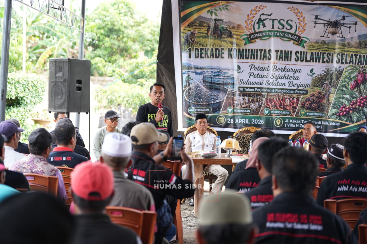 AJATAPPARENG.ONLINE, SIDRAP — Peringatan satu dekade Komunitas Tani Sulawesi Selatan (KTSS) dengan tema “Petani Berkarya, Petani Sejahtera, Sulsel Berjaya” berlangsung meriah di Villa H. Zulkifli Zain, Baranti, Ahad (26/4/2026).