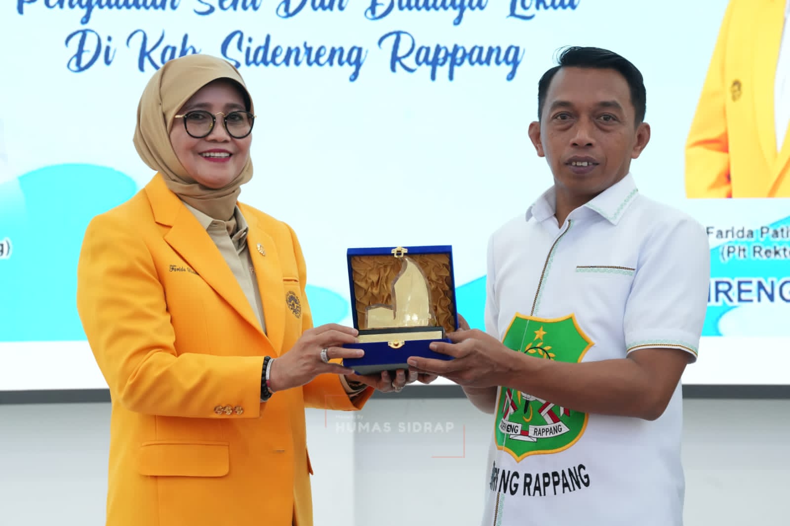 Prosesi penandatanganan berlangsung di Aula Saromase, Kompleks SKPD Sidrap, dilakukan langsung Bupati Sidrap, Syaharuddin Alrif, bersama Pelaksana Tugas (Plt.) Rektor UNM, Prof. Dr. Farida Patittingi, dan Dekan Fakultas Seni dan Desain UNM, Andi Ihsan.